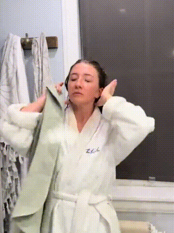 "I have really long hair and normal towels always fall off. This one wraps perfectly and stays in place while I do my skincare routine."