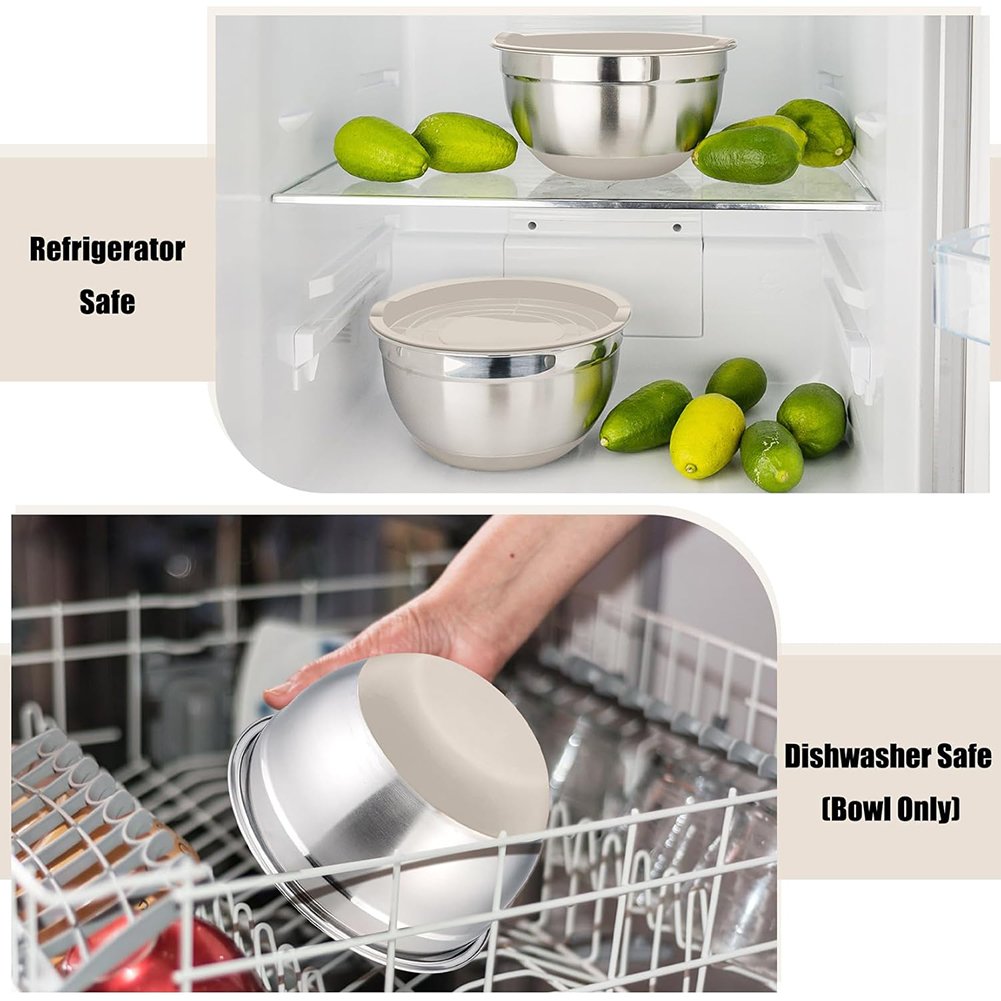 Whether you're preparing daily meals, baking desserts, or storing leftovers, this stainless steel nesting mixing bowl set provides the versatility and durability every kitchen needs.