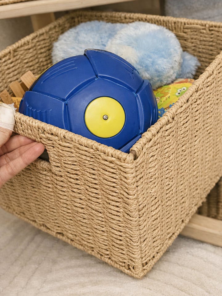 Using the woven storage baskets is simple and flexible.