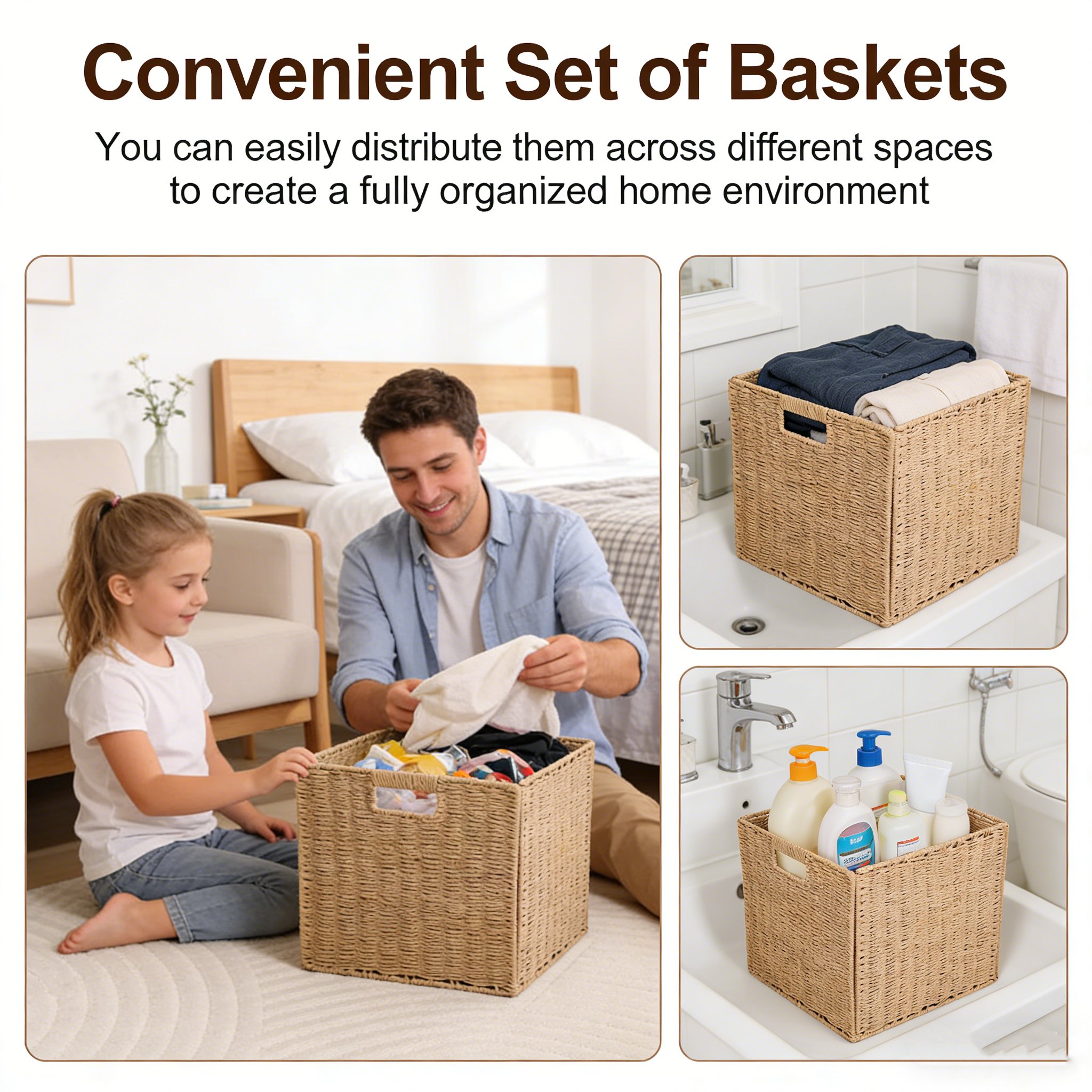 Perfect for bedrooms, living rooms, laundry rooms, closets, and even hotels, this versatile basket set provides large storage capacity while enhancing your home decor.