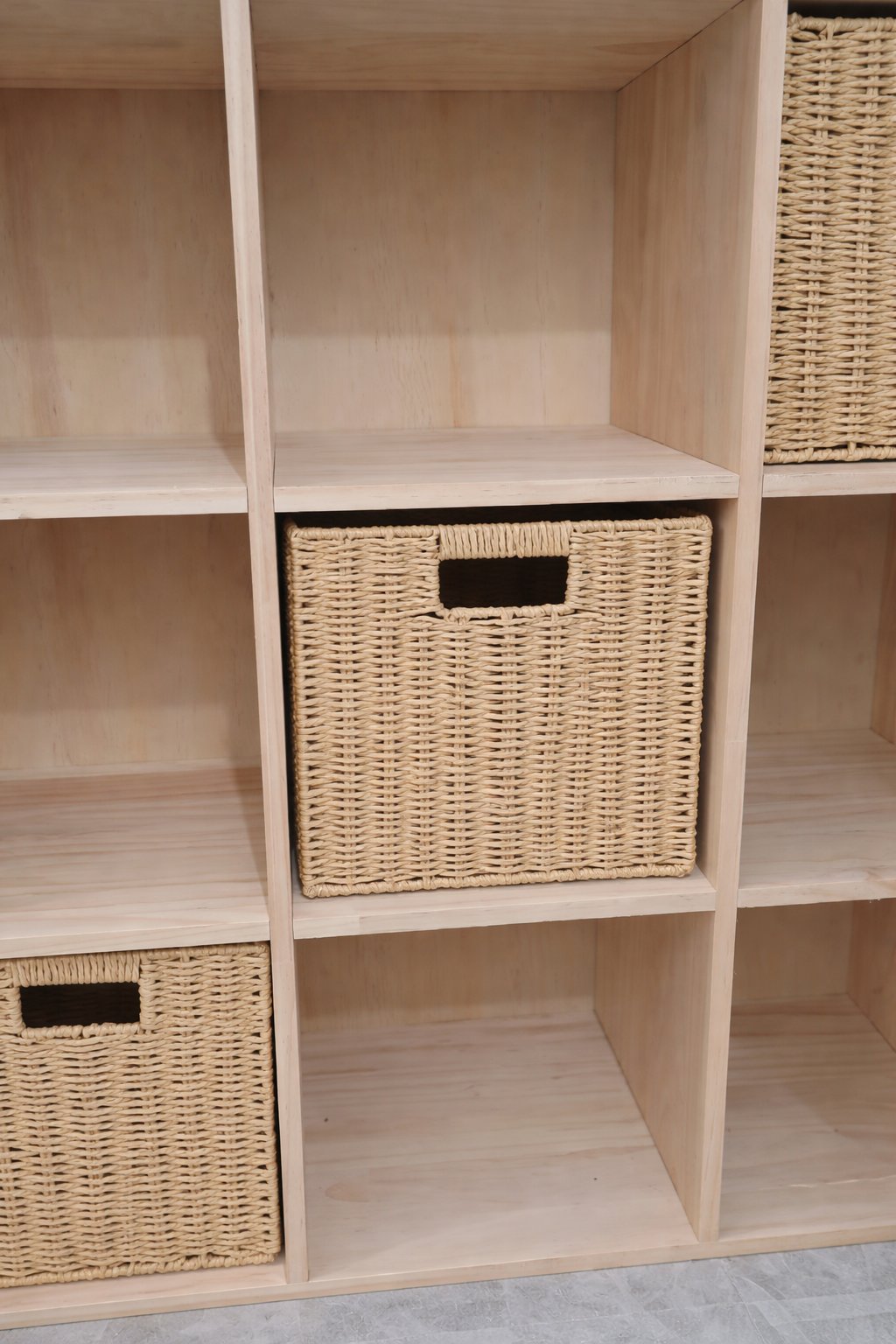 Place the baskets inside cube storage shelves, closets, or open spaces.