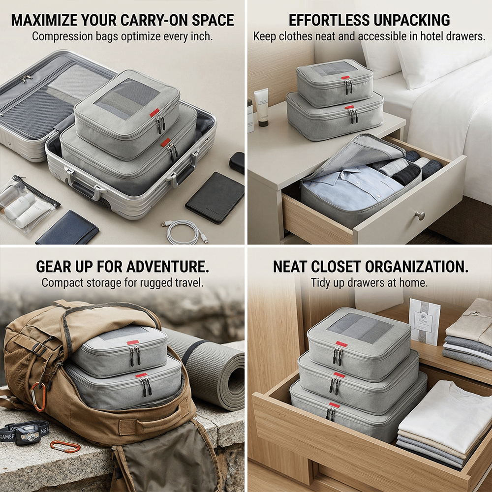 Maximize your luggage space and stay organized wherever you go! These compression packing cubes help you fit more clothes, reduce wrinkles, and keep everything neatly arranged 🧥👕