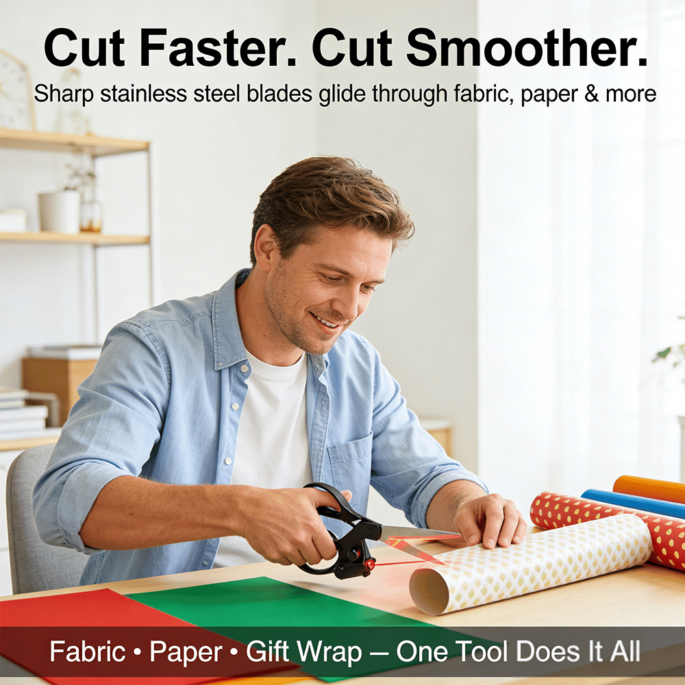 Tired of uneven cuts ruining your projects? These innovative laser-guided scissors help you achieve flawless straight lines effortlessly—whether you're sewing, crafting, or wrapping gifts 🎁