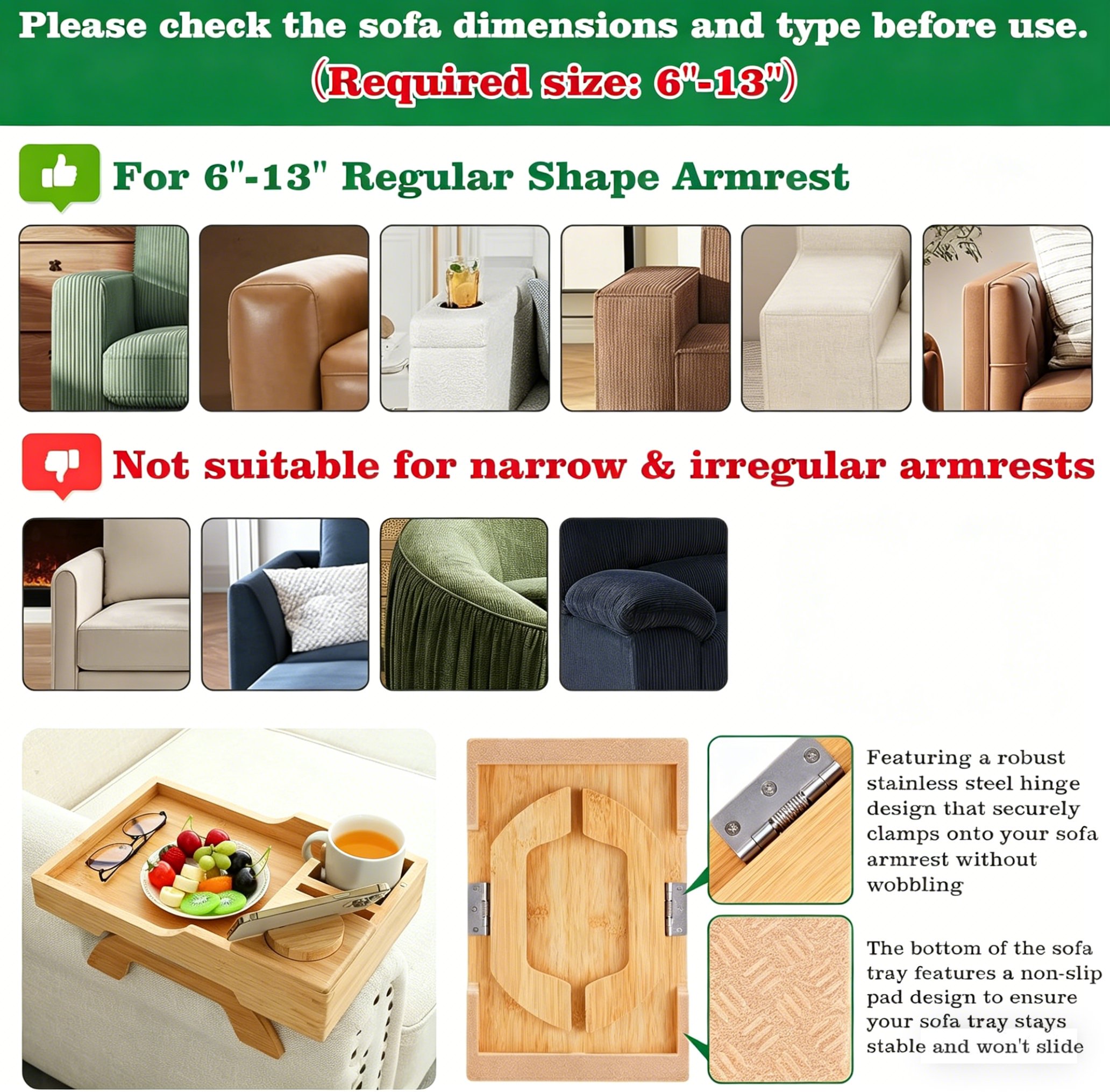 A: It fits most sofa armrests up to 13 inches wide thanks to its adjustable design.