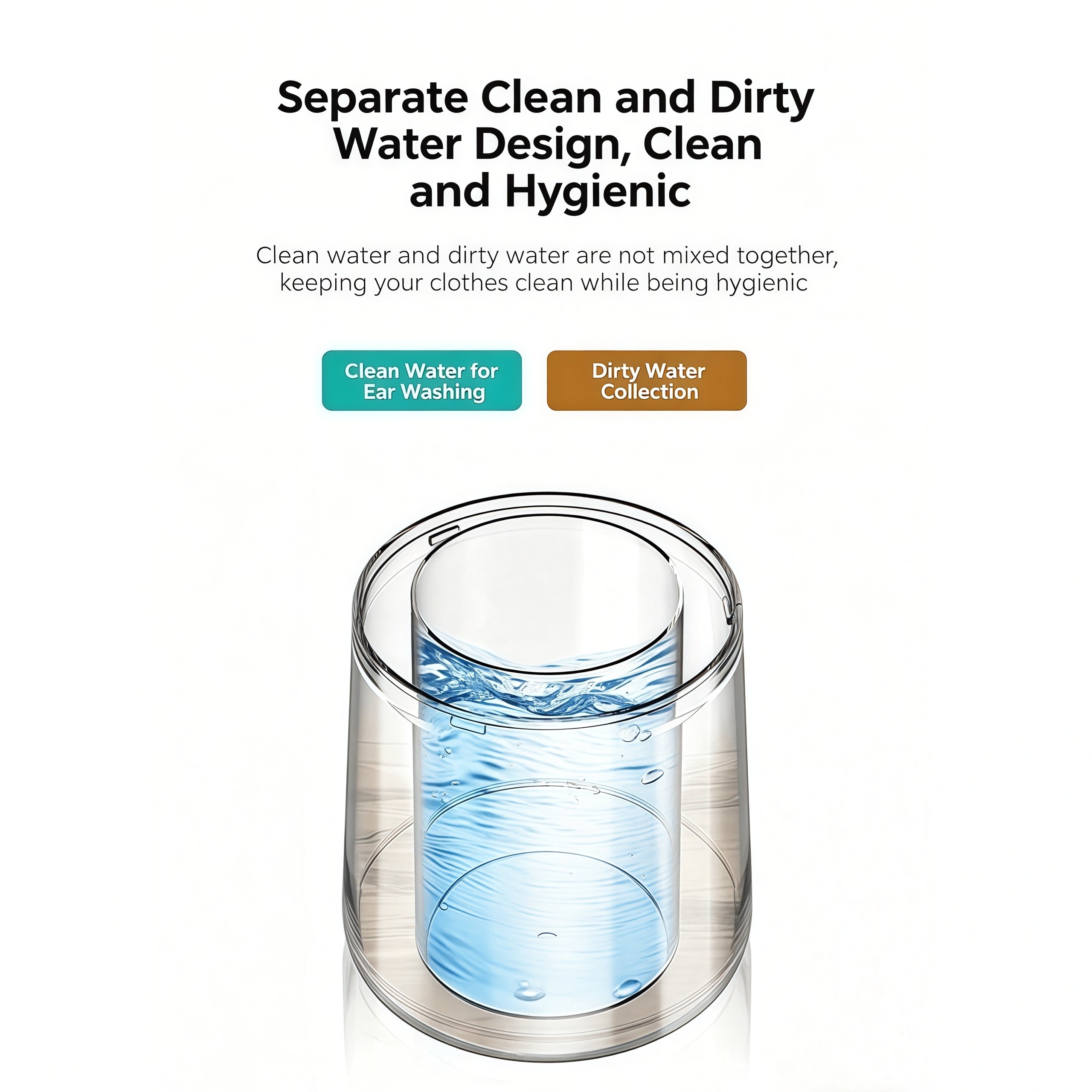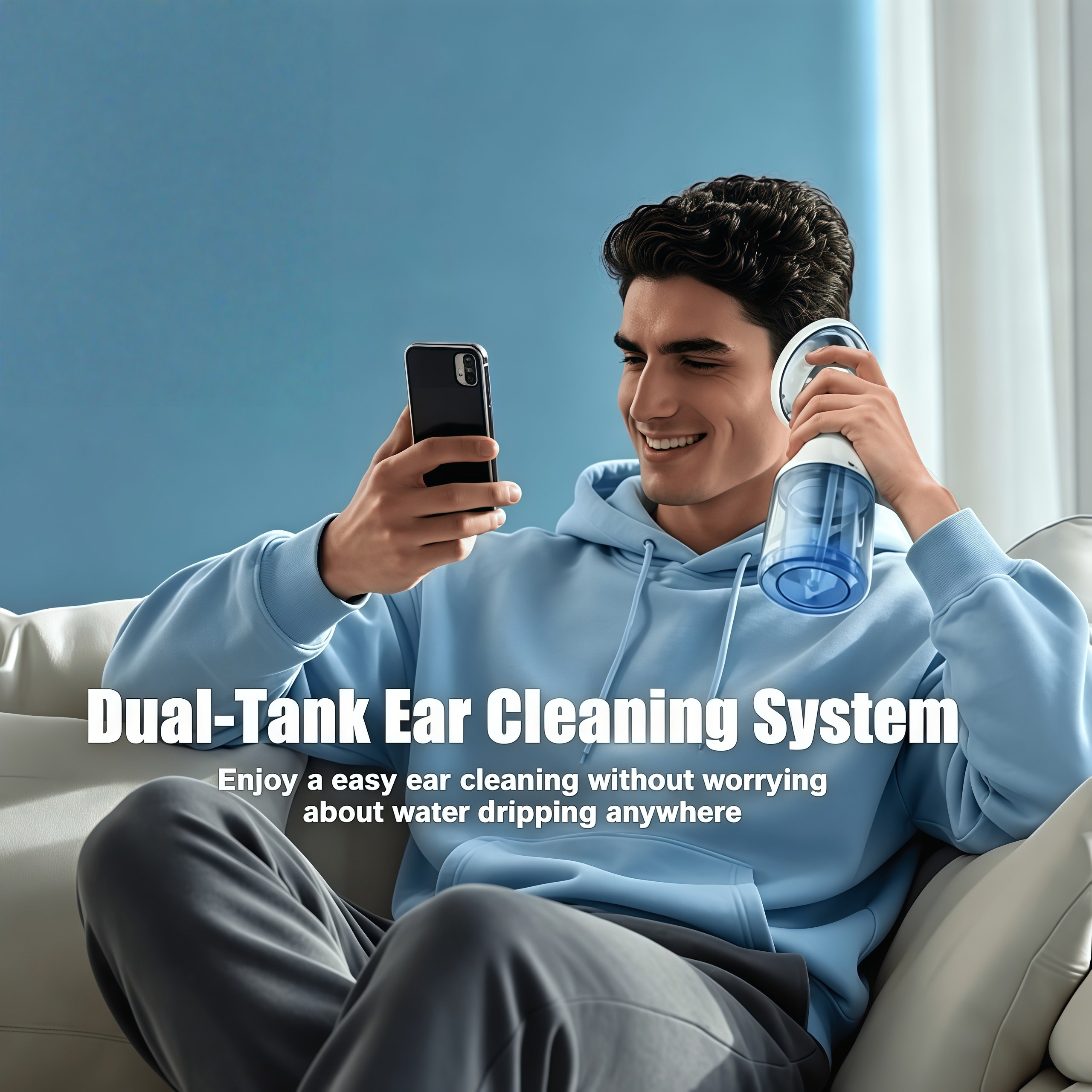 This upgraded ear-cleaning device is designed for comfortable home use, combining efficiency, safety, and convenience. Its dual-tank system keeps clean and wastewater separate, eliminating mess, while USB charging and long battery life ensure hassle-free use. With four adjustable modes and dual nozzles, it easily adapts to both gentle and deep cleaning needs. The IPX7 waterproof design also allows safe use in the shower, delivering a more effective and comfortable ear-care experience.