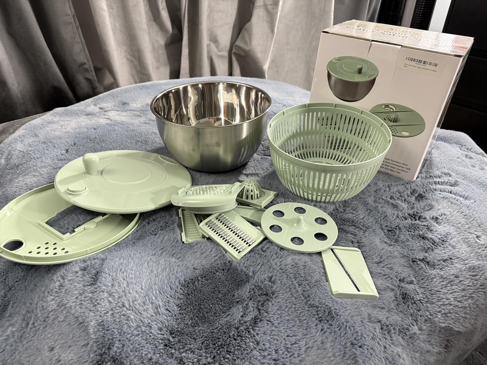 🥗 Toss, spin, slice—all in one fresh green set! Cut salad prep time in half with our 5.28 Quart spinner, dual drainage, and multi-blade system. 🥕 Safe, non-slip, and compact for small kitchens—keep veggies crisp and meals hassle-free! 🌟