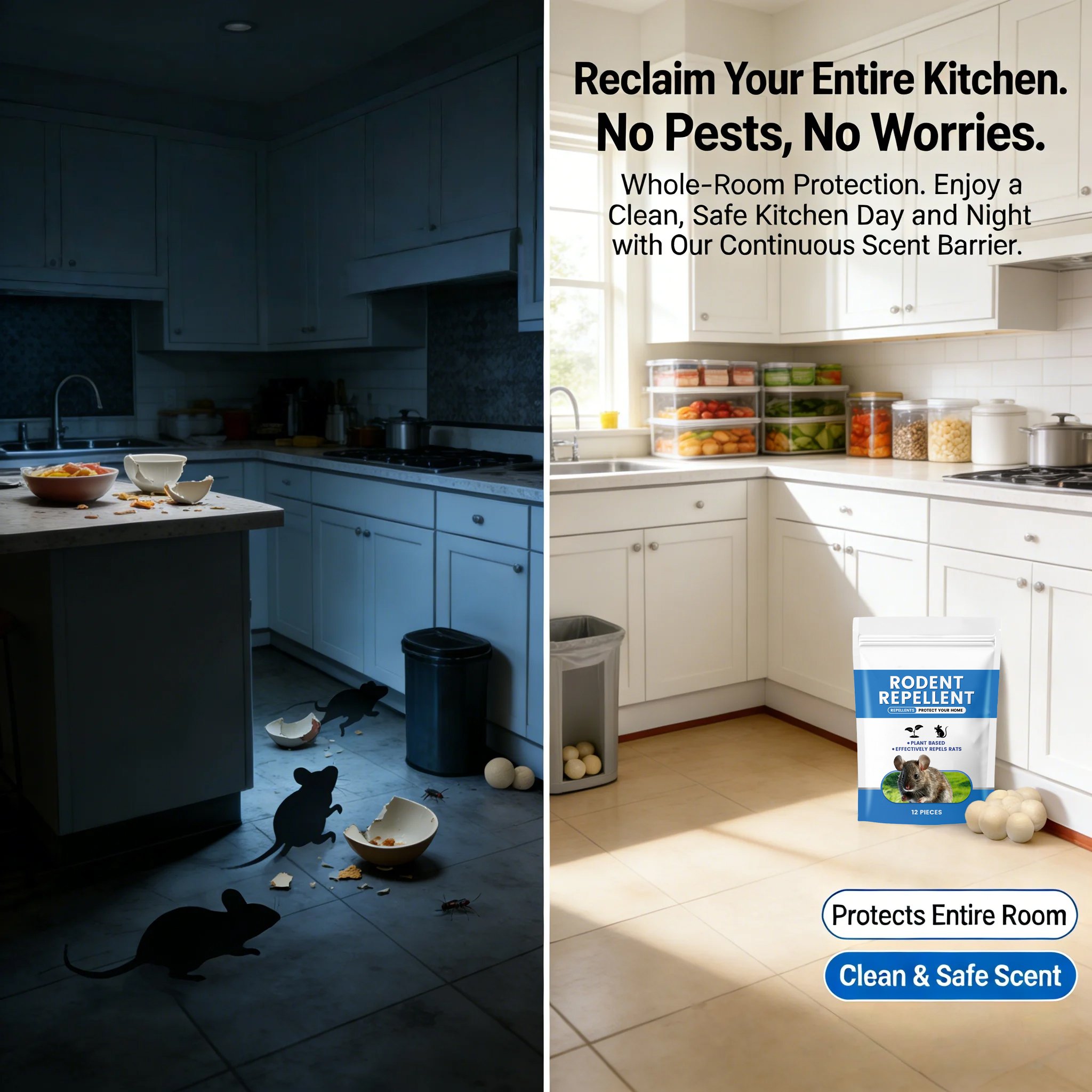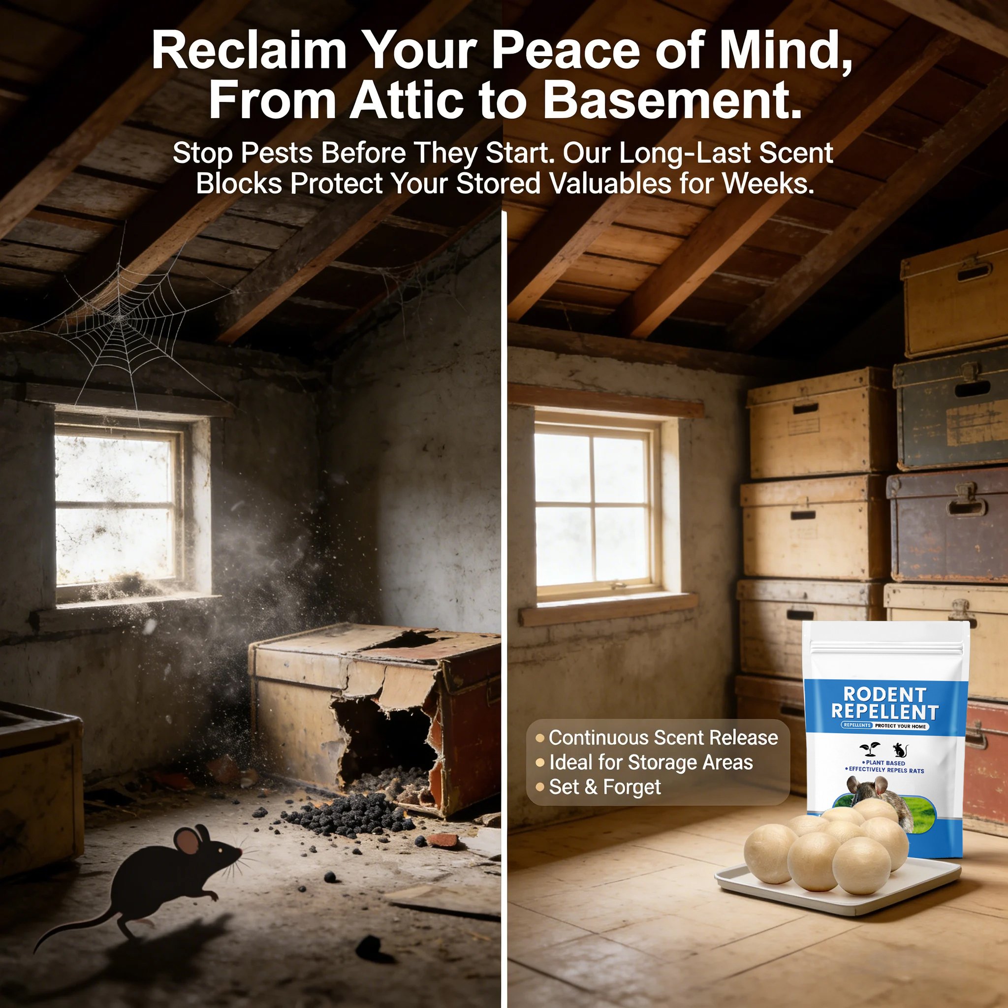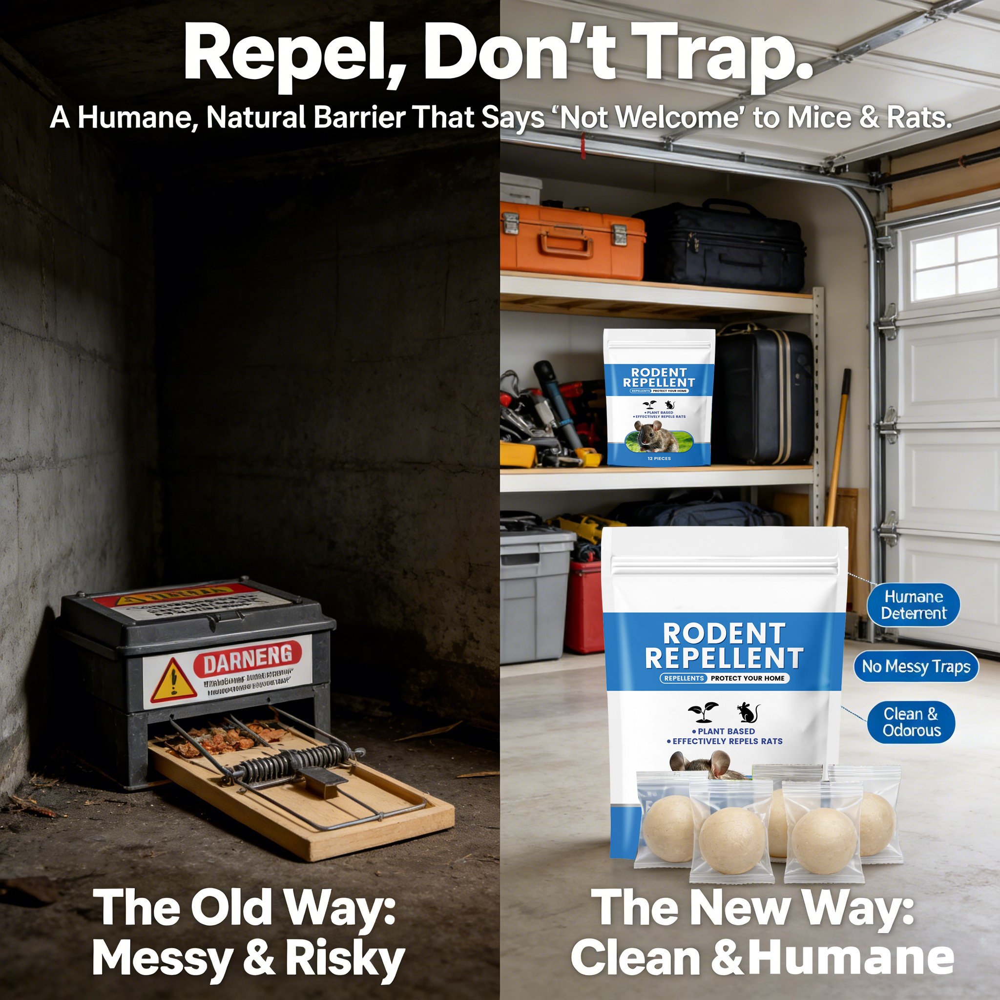 - Natural & Humane: Uses non-toxic, plant-based essential oils to deter mice and rats without traps or poisons.