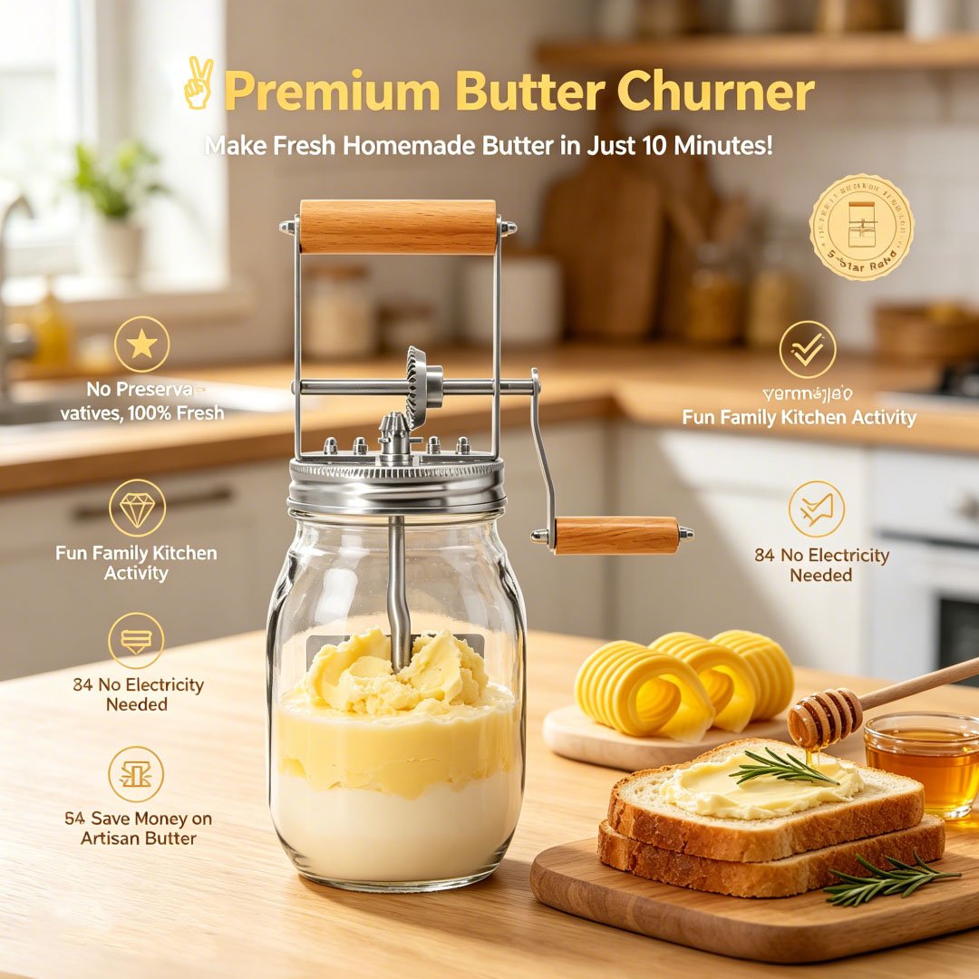 - Transform heavy cream into creamy, preservative-free butter in as little as 10-15 minutes