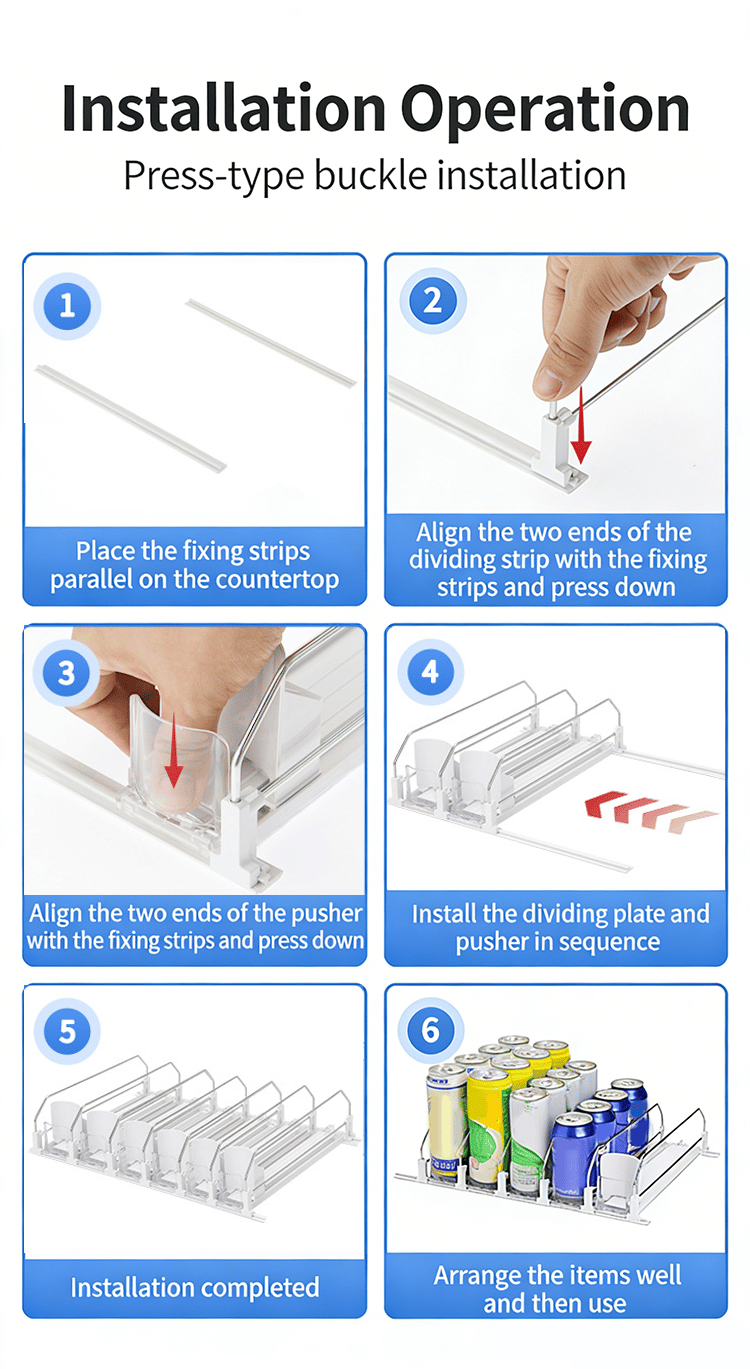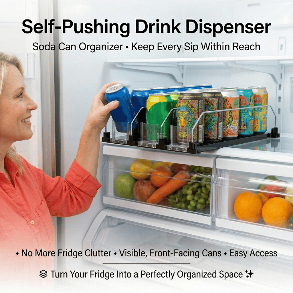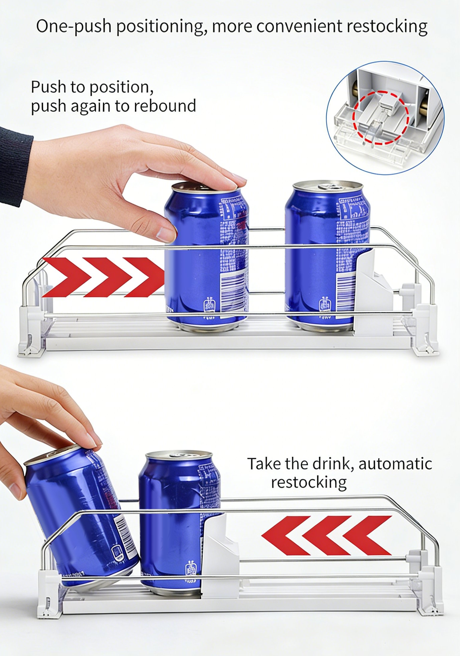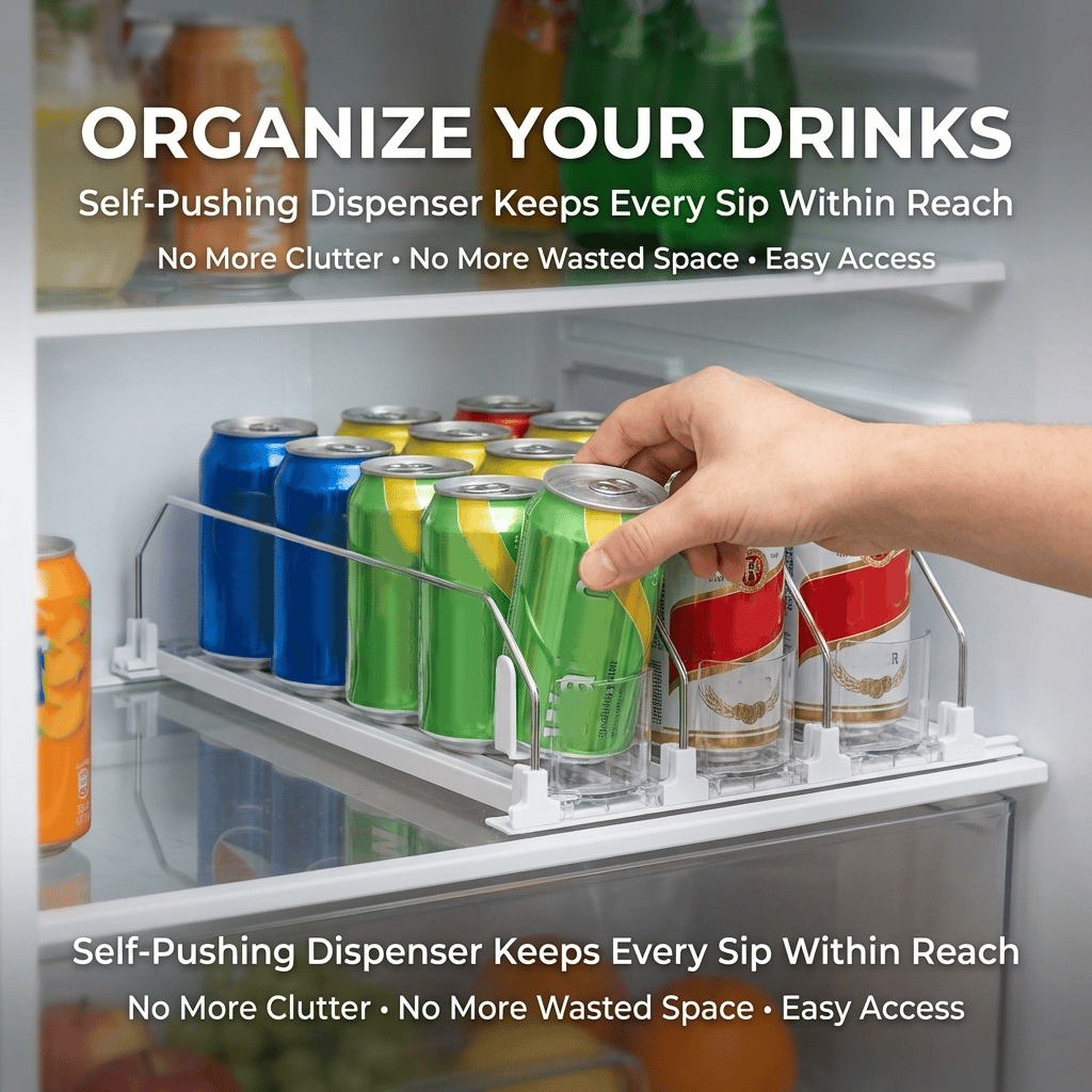 With this self-pushing drink organizer, every beverage stays neatly lined up, visible, and easy to grab — just like a professional display.