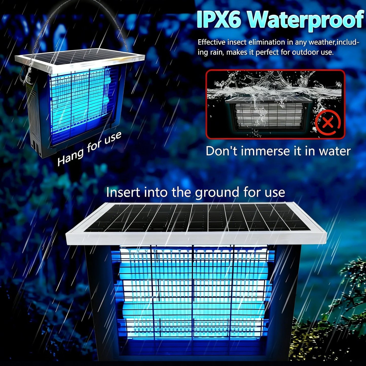 - Uses non-dazzling violet light to attract insects 🌌