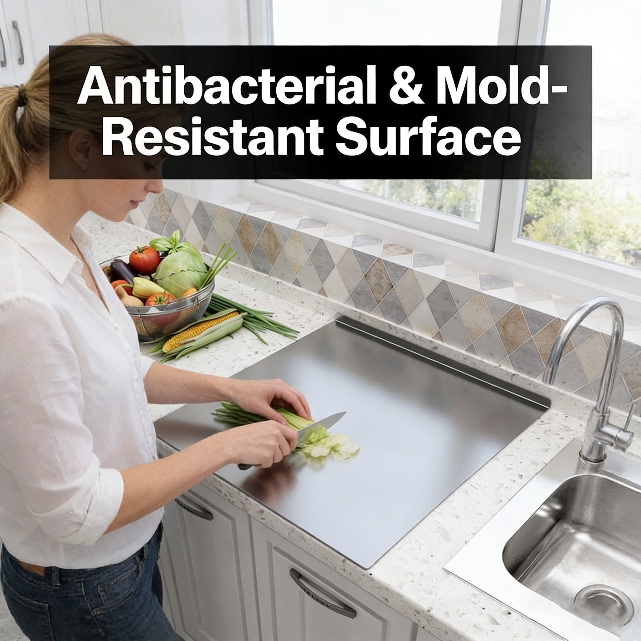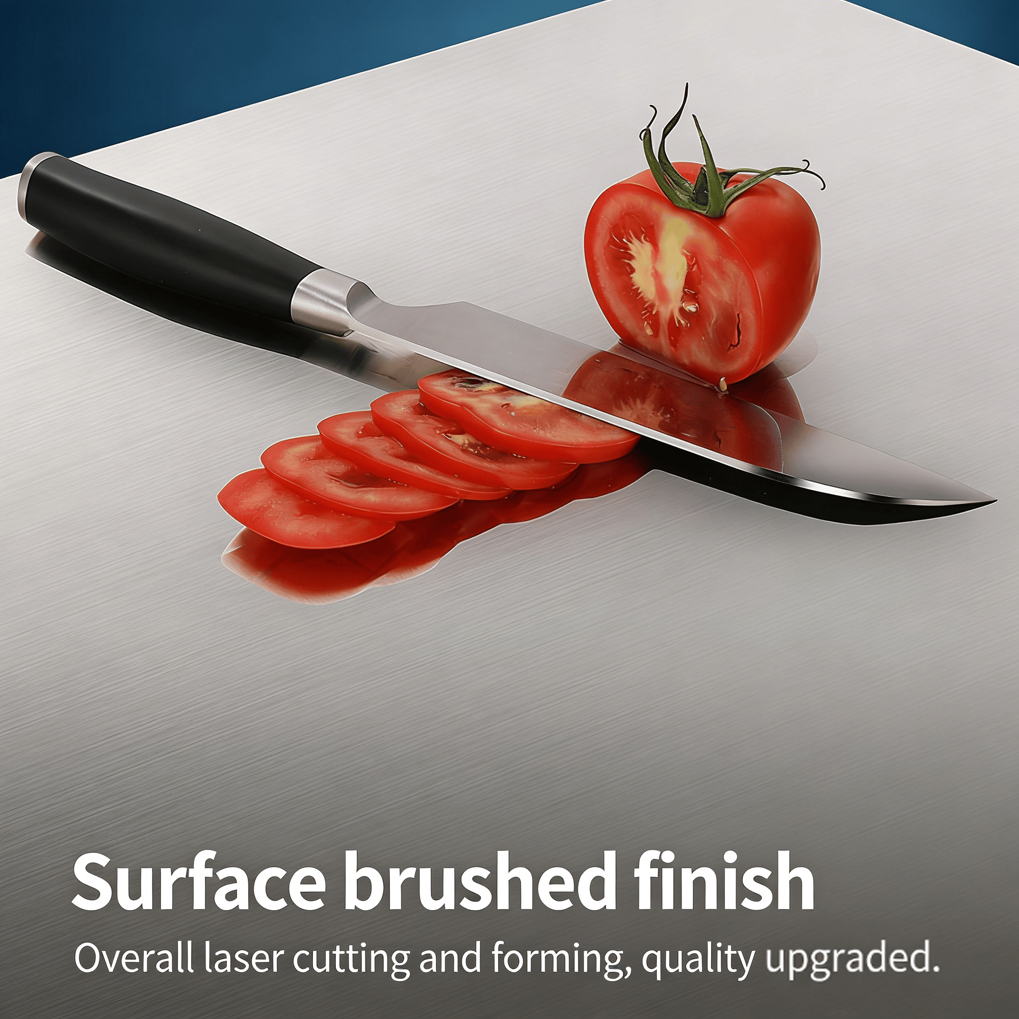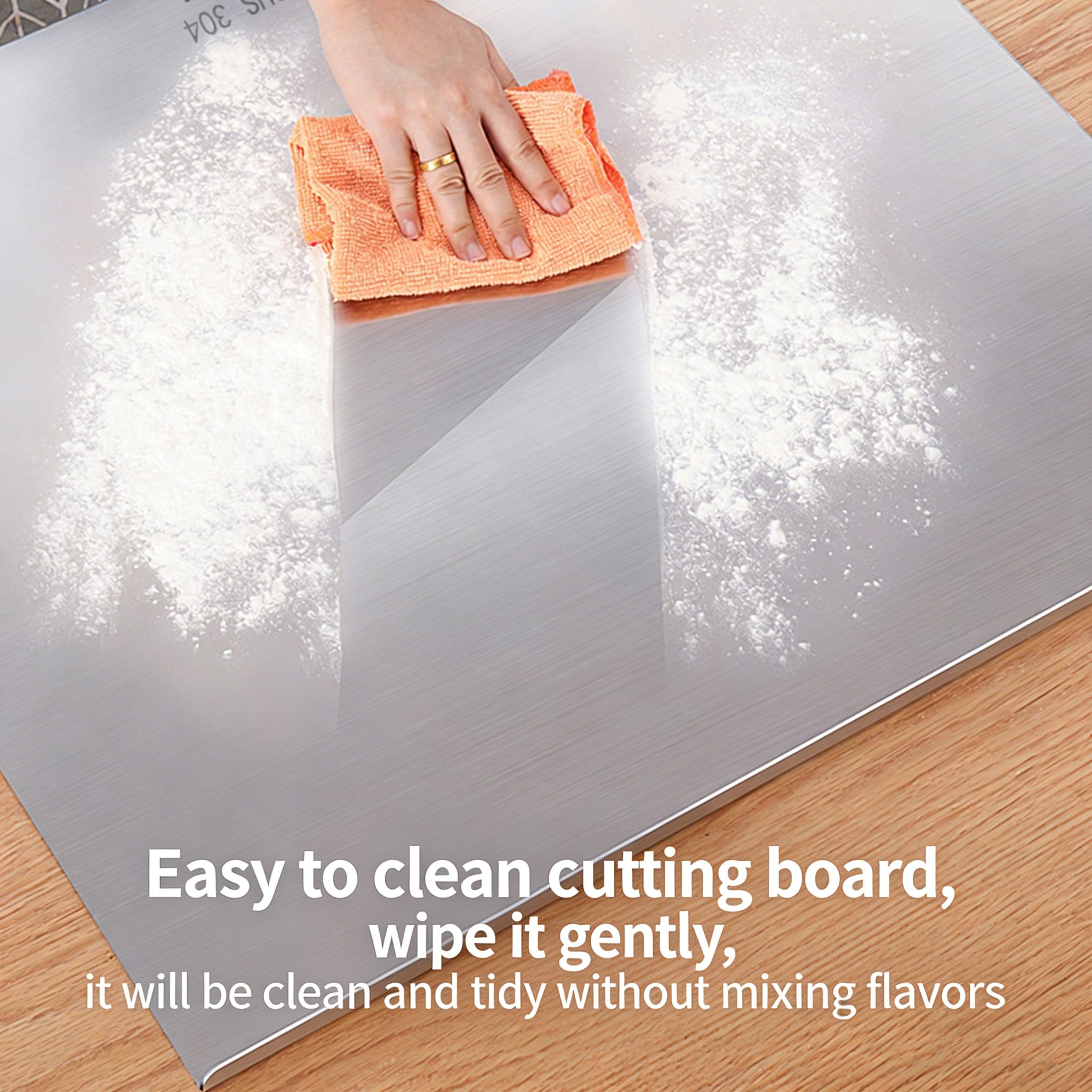 Unlike wood boards that can absorb liquids and harbor bacteria, stainless steel provides a non-porous surface that helps maintain better kitchen hygiene.