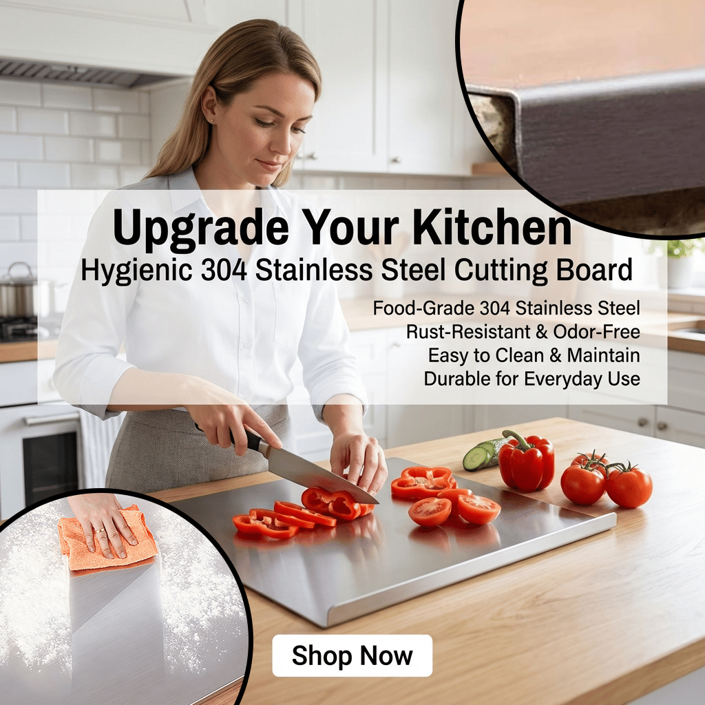The 304 Stainless Steel Cutting Board is designed to provide a durable, hygienic, and easy-to-clean surface for all your kitchen preparation needs. Made from food-grade stainless steel, this board offers excellent resistance to mold, stains, and odors while maintaining a sleek, modern look.