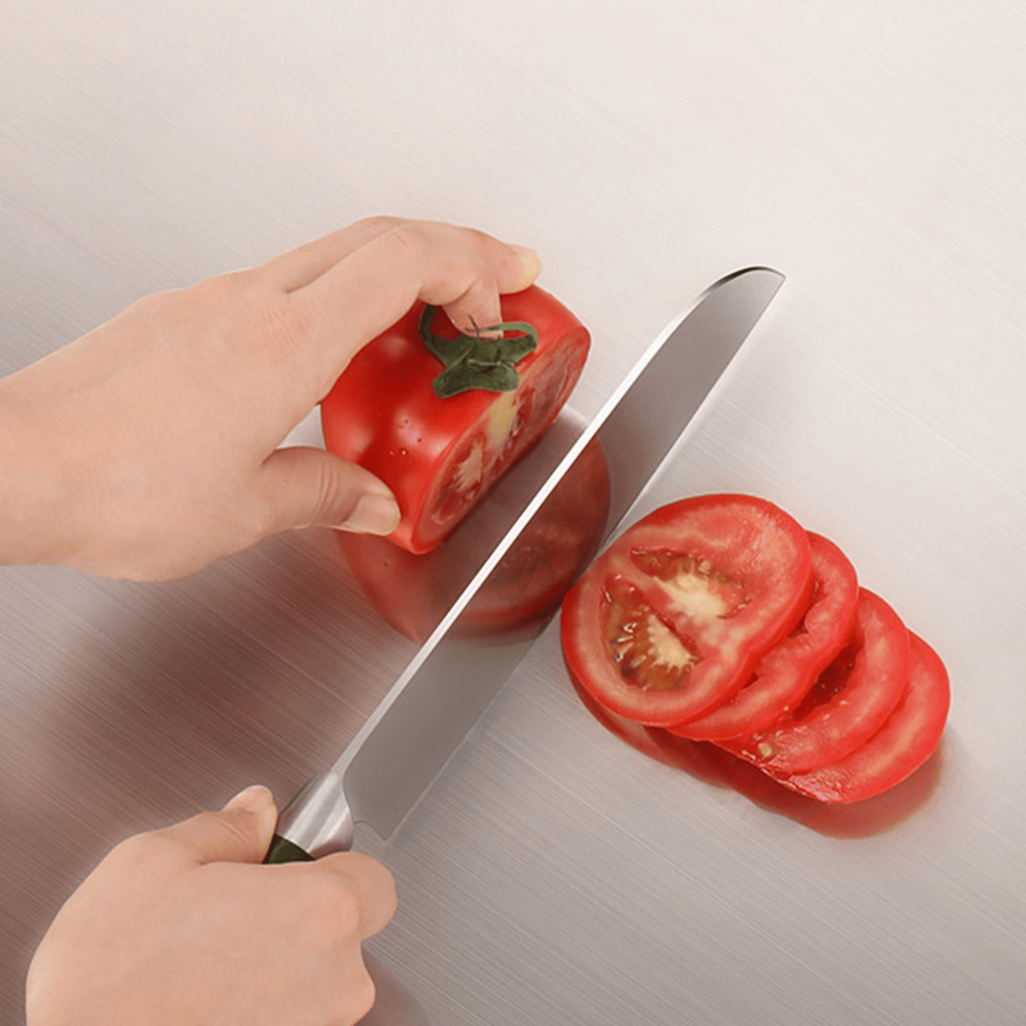 Traditional cutting boards made of wood or plastic can easily absorb moisture, trap bacteria, develop mold, or retain food odors over time. This can affect both the cleanliness of your kitchen and the safety of your food.