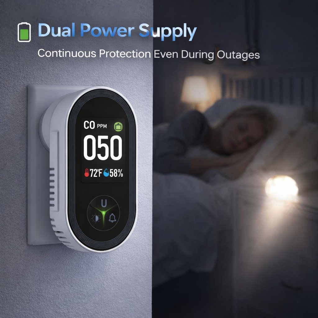Compact, reliable, and smart, this plug-in carbon monoxide detector keeps your home safe while displaying real-time CO, temperature, and humidity levels. Easy to use, travel-ready, and perfect for every room.